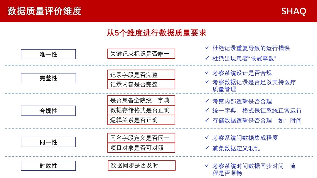 評價維度從原來的4個維度調整為5個維度,包括唯一性、完整性、合規性、同一性、時效性。