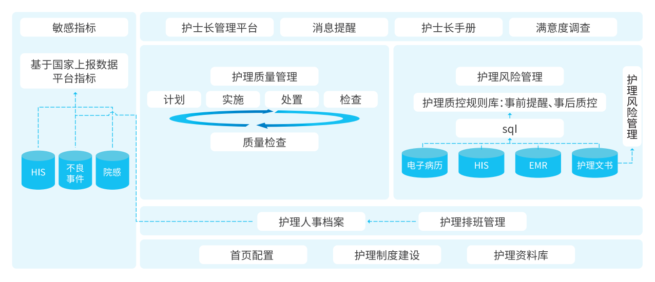眾陽云智慧護理管理系統,以臨床護理和患者為中心構建科學化、精細化的護理管理,不斷追求護理質量的持續改進,兼顧降本增效。面向醫院護理部,基于現代護理學的臨床數據和信息處理中樞,自動審、管全院上報,不再需要人工整理上報文件,實現上報流程化;充分利用一體化理念,智慧化數據處理功能,自動進行護理敏感數據抽取,實現數據標準化,提升護理服務水平、護理效率和護理質量。