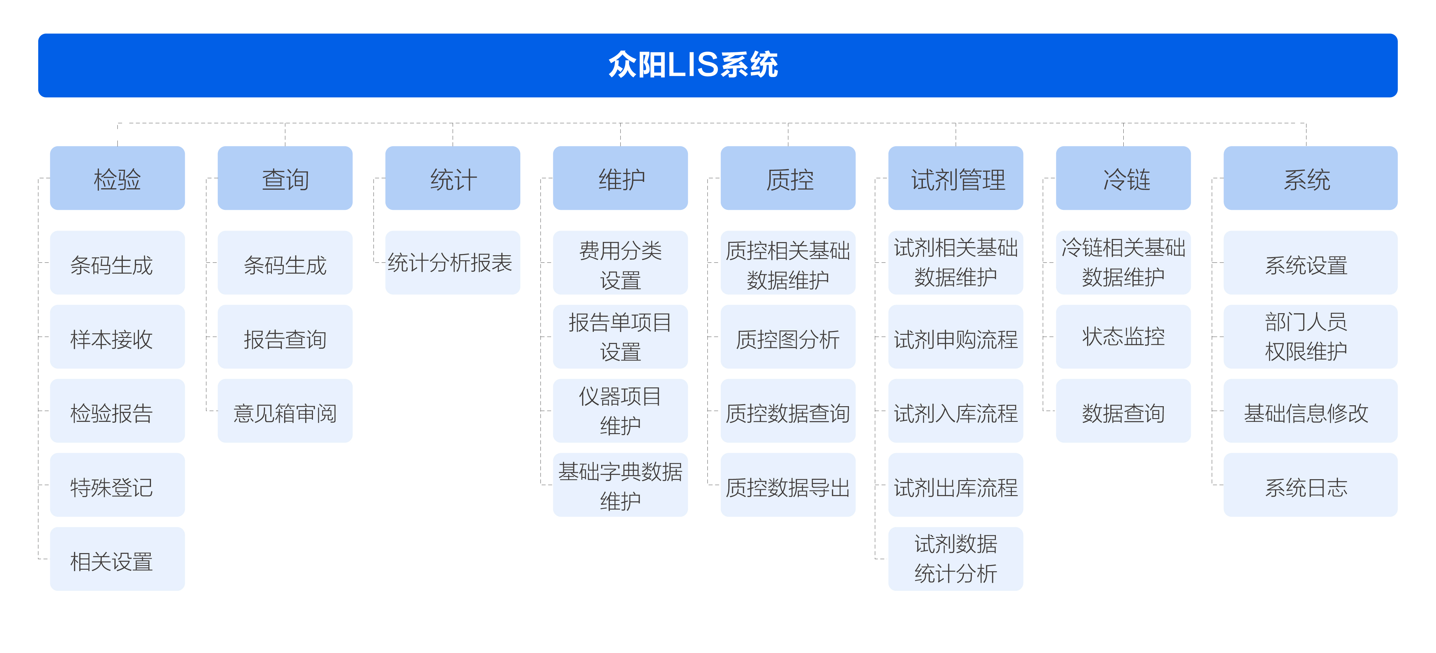 眾陽LIS系統以實驗室標本檢測全過程中采集的數據管理為核心,輔助臨床決策;以科室內部精細化管理為手段,規范檢驗流程、提高工作效率的一套以科學合理的實驗室工作流程為基礎,參照國際標準HL7、ASTM協議,結合條形碼、儀器通訊等技術來研究和開發的檢驗信息管理系統。