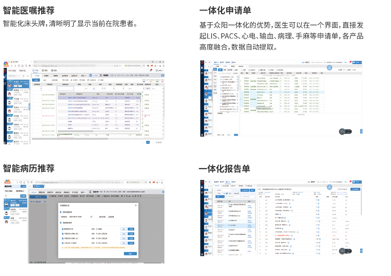 眾陽醫院電子病歷系統(EMR)圍繞“醫生為患者看病”的核心業務,以電子病歷為核心,全面的患者數據采集。無縫展示患者完整的一體化數據,實現醫囑、檢驗、檢查閉環呈現,實現結構化電子病歷。輕松完成病歷書寫、質控和評分。
