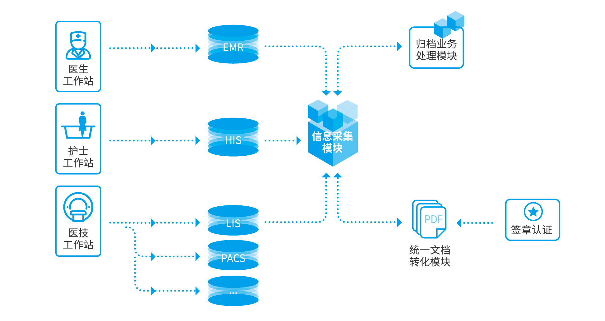 眾陽云無紙化歸檔系統結合CA認證的電子簽名,通過采集病歷數據,包含病歷文書、護理文書、醫技產生的檢查檢驗報告等,對已歸檔病歷進行數字化、無紙化管理,提高病歷存檔管理工作效率,徹底解決傳統紙質病歷易丟失、易損壞、難儲存的問題。